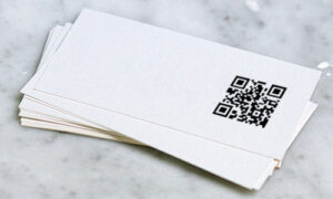Un QR code (Quick Response Code) est un code au format carré et en 2 dimensions, qui permet de stocker de l’information. Lisible depuis un téléphone portable grâce à une application ou simplement en le prenant en photo, il permet de rediriger vers un lien web mais aussi à d’autres contenus. Dans le cas d’une carte de visite, il peut être intéressant d’insérer un QR code qui, après lecture sur un mobile, pourra proposer à l’utilisateur de créer directement une fiche dans ses contacts avec les coordonnées de la personne ou entreprise en question, accéder à un CV ou bien à une page de présentation de l’entreprise par exemple. Le QR code est donc un moyen quasi-illimité de compléter une carte de visite.