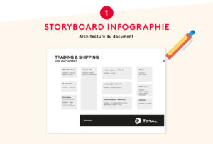 Nous avons définis le nombre de chiffres à illustrer en fonction du support (taille de l’infographie, durée de la vidéo). Une fois les contenus fournis par le client, nous avons pu passer à l’étape suivante…